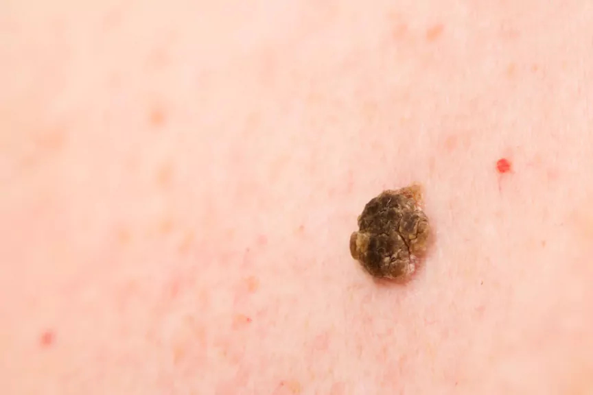 • Ouderdomswratten (seborroïsche keratosen) – bruine of ruwe plekjes die vaak met de jaren verschijnen